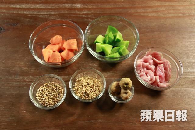 材料:炒谷芽1両、炒麥芽1両、青紅蘿蔔各1條、蜜棗3粒、瘦肉6両