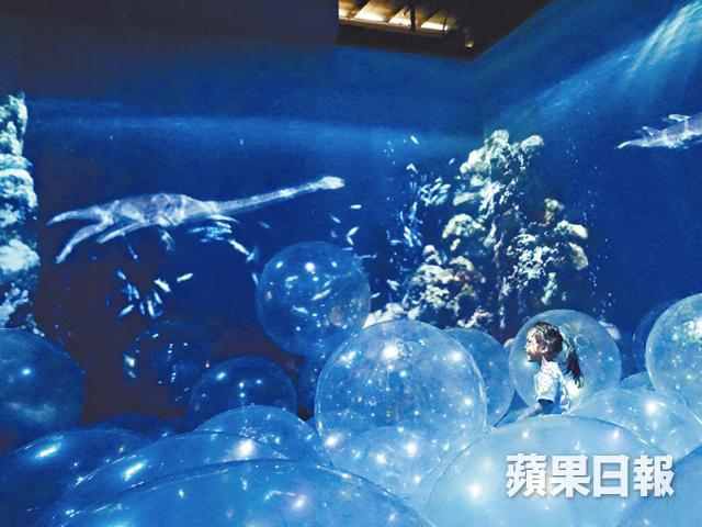 就如入了科學館,介紹恐龍的歷史,再到恐龍骨展覽。1:1的腕龍、三角龍、劍龍骨,跟自然博物館內的化石一模一樣。恐龍骨是不是真的?「當然是假的了!」Shin笑笑口答道,但顯然為幾可亂真的程度自豪。再進就是Dino Lab 展區,有點像《侏羅紀世界》裏培植恐龍蛋的實驗室。忽然場內的燈一暗,模擬有暴龍來襲,搵自己骨肉,扮作科學家的講解員叫大家伏下,最後當然化險為夷,職員甚有戲,將平白的恐龍介紹變得生動。