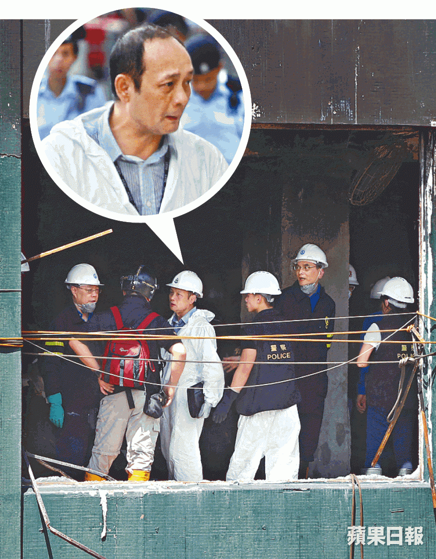 昨午1時許,鍾志明率同多名警員到達現場了解情況,與稍後抵達的機電工程署及政府化驗所人員會合後,眾人於下午近2時穿上水鞋及戴上安全帽,與消防調查人員一起進入災場調查及蒐證,至傍晚6時許才離去,其間鍾志明曾離開,之後又再返回。