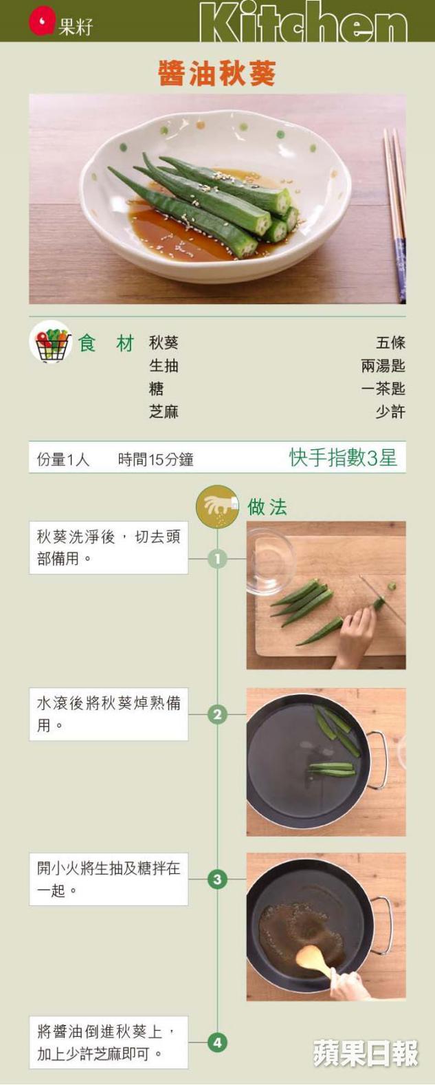 4.將醬油倒進秋葵上,加上少許芝麻即可。