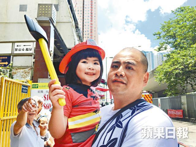 5歲姓郭的小妹妹穿上「消防員制服」,到災場旁大喊加油,為消防員打氣;亦有一名男孩在父親陪同下,向休息的消防員送贈寫有「Fire hero thank you」(消防英雄,謝謝你)的心意卡。