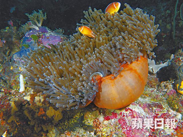 五顏六色的軟珊瑚令四周繁花似錦,柔軟舒服得叫人好想躺在上面午睡。公主海葵(Magnificent Anemone)明明像一個橙色的圓花樽,張開口又成了一大張軟棉被,讓《海底奇兵》的小丑魚(Anemonefish)在上面捉迷藏。珊瑚礁上掛滿巨型海扇(Sea Fan),猶如雕上精緻的紋理一樣。