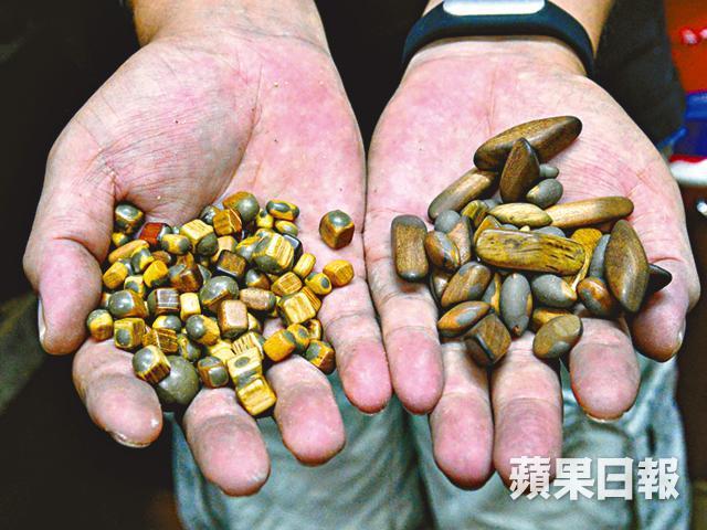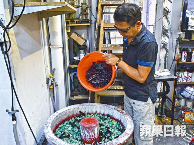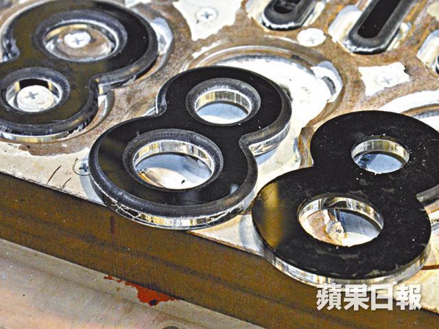 把車牌每個膠字號碼做到光滑漂亮並非易事,用人手打磨的話,怎樣也不能照顧到字母或數字間的細節位,如A字或8字的內圈,很難做到一致的拋光處理。「我引入了震光機,每次負責『磨花』約1,000顆膠字母表面,讓它們粗糙度較一致。接着在另一部拋光機內,加入木粒及蠟粒,分別以粗幼打磨程序,進行拋光,要7天內24小時不停滾動。」如斯勞神費勁,難怪全港只有吳奕輝還在堅持,雖然一對車牌索價$650,售價貴一截,但百萬名車也捨得買的車主,怎會節省這數百元呢?