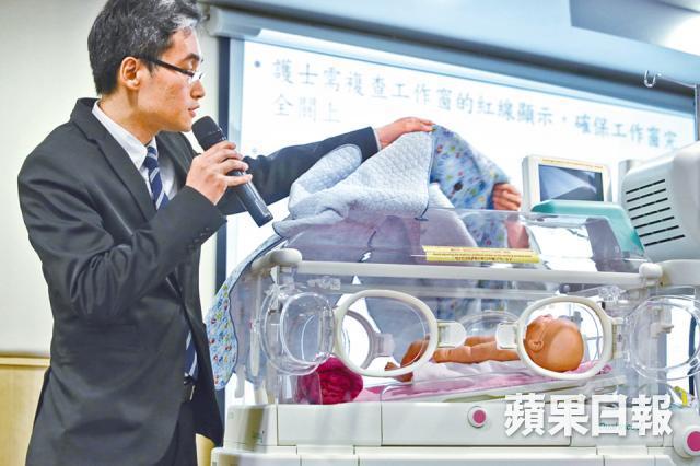 廣華醫院行政總監屈銘伸昨聯同專家小組主席孫天𥧌召開記者會交代事件。孫表示,塏錡因為有呼吸道病徵,故溫箱病床須稍為升高,讓塏錡躺着時頭高腳低,頭部與工作窗成水平,讓呼吸更順暢。