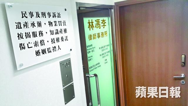 該無牌「林馮李律師行」總行開設在中環泛海大廈7樓,其門口掛有「民事及刑事訴訟,遺產承辦,物業買賣,按揭服務,知識產權,傷亡索償,授權委託,婚姻監禮人」等一般律師行的服務項目。從門縫中可覷見寫字樓面積約500呎,其中一角的書櫃中擺滿法律書籍及一些獎盃。據大廈保安表示,該律師行上月才開設。
