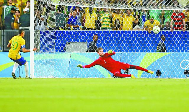 巴西男足在賽事初段演出一般,首兩戰皆悶和弱旅,淪為主場球迷柴台對象;不過,球隊及時反彈,繼大勝丹麥晉級後,於淘汰賽殺敗哥倫比亞與洪都拉斯,決賽與德國爭金。終極決戰開賽26分鐘,尼馬在禁區頂被侵犯,他親自處理罰球中楣底彈入,為巴西開紀錄;德國上半場三度攻門中楣相當欠運,直至59分鐘終由麥斯美亞接應橫傳撞射扳平1:1。兩隊戰至完場以至30分鐘加時均再無紀錄,要以互射12碼決勝負,雙方首四輪全部射入,德國第五輪由尼斯彼德臣主射,被巴西門將韋華頓撲出;最緊張時刻,巴西由尼馬操刀,一射皮球在右上角入網,實現承諾助球隊奪得歷史性奧運首金。