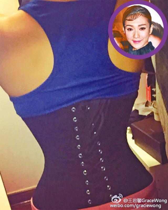 王君馨近日在無綫劇《城寨英雄》,憑着飾演為父報仇的索女花曼跑出,長期以性感長腿示人外,還有標榜超幼的20.5吋纖腰。她前晚就在微博貼相,自揭「秘密武器」,展示身穿藍色的背心裏面,還有黑色的腰封打底,她更留言:「20.5吋腰嘅謎底揭開。」其實,王君馨一直都收身有術,不過今次要挑戰超纖腰,都要靠腰封幫助,不少網友都留言讚她身材好,亦有人留言:「睇到都覺得辛苦,仲要有動作,諗起都慘」。