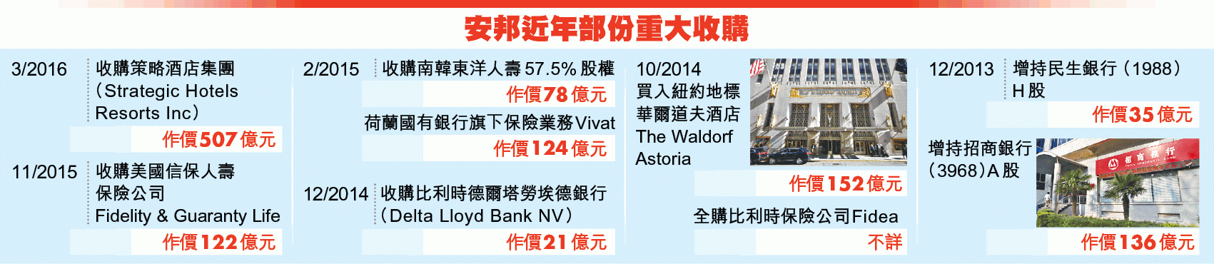 彭博亦引述消息指出,安邦上市的時間為明年,除壽險之外,亦包括海外業務,未來數月計劃進行上市前融資。