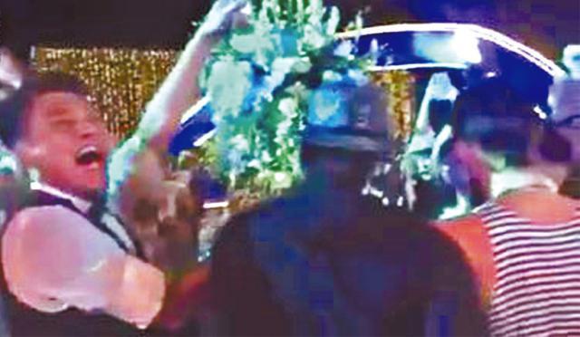 在敬酒環節時,朱孝天與太太四出多謝賓客,當走到吳建豪與言承旭所坐的枱時,現場奏起F4的經典歌《流星雨》的音樂,朱孝天搭實言承旭膊頭,心情high爆舉高手,三人以「F3」合唱,全場賓客亦跟着大合唱,掀起婚宴高潮,仔仔若能現身會更為完美。