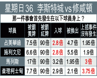 至於李斯特城同日迎戰修咸頓時,由於前鋒施利文尼腳風順,近三場入三球,且料有前鋒岡崎慎司及翼鋒迪馬雷格雷復任正選,捧讓平/半的李城上盤。修頓雖亦有前鋒查理柯士甸當銳,但近六次鬥李城只得一勝一和四負之餘,近五次訪李城更只得一勝四負,今役受讓亦難看好。(球賽編號:星期日36;now622台及樂視今日9:15pm直播)