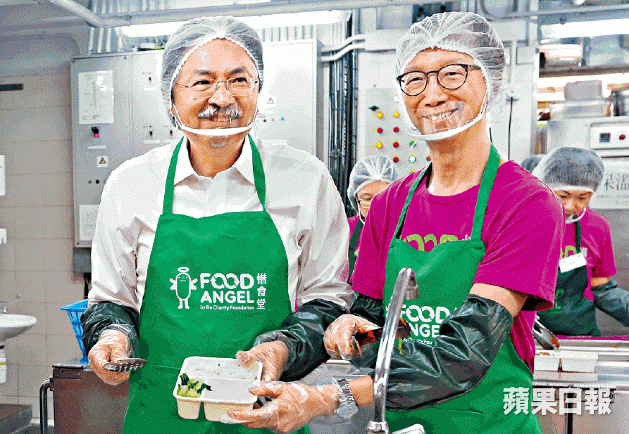 惜食堂昨日舉行惜食飯感謝宴,邀請了一眾贊助和捐贈者等品嚐利用剩食製成的飯餐,曾俊華以及惜食堂主席梁錦松等均有出席。活動期間,曾俊華應邀穿上衞生裝備,包括頭套、圍裙、口罩、手袖、手套等,到廚房與梁錦松製作飯餐,合力炮製關顧基層親民騷。