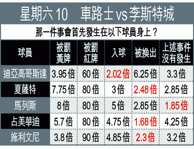 車路士今季攻強守弱,入球多之餘失球亦不少,今面對不擅作客的李城,預計會出現不少入球,中位數[2.5球]「大」穩開。