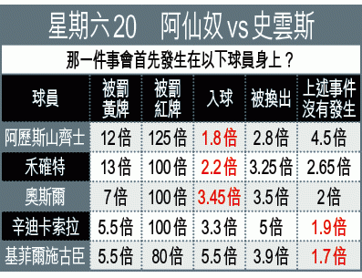 各項賽事五連勝的阿仙奴,周六迎剛由巴特利接手的史雲斯。兵工廠雖有基奧特及艾朗藍斯養傷,但奧斯爾及禾確特可披甲,攻力有保證;「天鵝」雖然四連敗,但近三場都能破蛋,所以今場宜捧中位數[3/3.5球]的入球「大」。(球賽編號:星期六20;now622台及樂視今日10:00pm直播)
