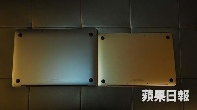 相比之前12吋的MacBook,新MacBook Pro和舊機的厚度差不多,而且大小亦相近,可見新一代MacBook Pro比上一代輕巧很多。而新MacBook Pro屏幕邊框亦比起MacBook更加窄,相對地屏幕所佔比例會較高。另外新機的TrackPad比起以往大,發佈會上聲稱加大其TrackPad是為方便用家的手勢操作。
