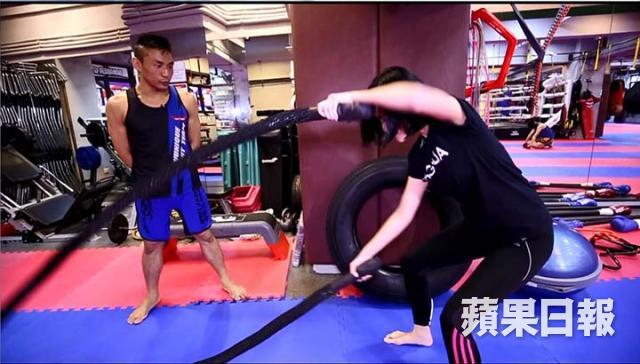 曾奪得WMC金腰帶世界冠軍的向師傅,會教大家兩種訓練動作,當然不少得搏擊出拳的訓練動作。手執戰繩左右手交替做上勾拳(Upper Cut Wave),會多些扭腰動作,可訓練腰腹兩側肌肉,增加線條,同時可增加身體的穩定及平衡。