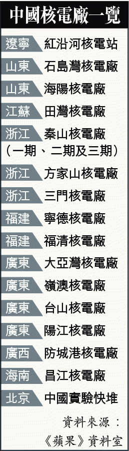 資料顯示,內地目前營運中的核電反應堆有36座,在建有20座,遍佈沿海各地,並向內陸發展;核電發電量約佔全國發電量3%;核電裝機可望在2016年超過南韓,位居世界第四。