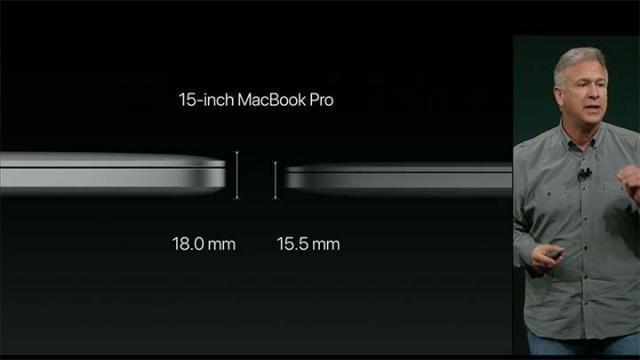 3.為史上最輕薄MacBook Pro ,13吋版本僅有14.9mm厚,比上一代薄了17%,3英磅重,比上代輕半磅。15吋版本15.5mm厚,比上一代薄了14%,4英磅重,輕了20%。