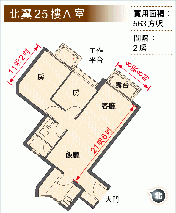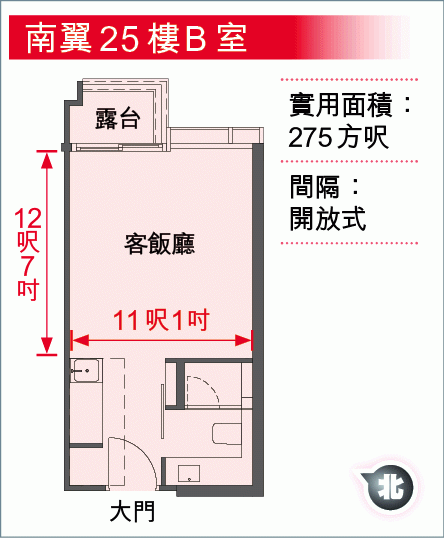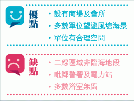 䨇寓全幢222伙,中小戶型佔220伙,間隔由開放式至兩房,欲以細碼單位招徠上車及投資客,但呎價昂貴,首批單位最平開放式折實310.3萬元,呎價11,325元,折實平均呎價11,988元,遠高於附近二手屋苑啟豐園、海翠花園、邁亞美海灣以及慧豐園呎價7,300至9,200餘元,較之前區內新盤豐連首批單位折實平均呎價8,826元,亦相差逾三成半。