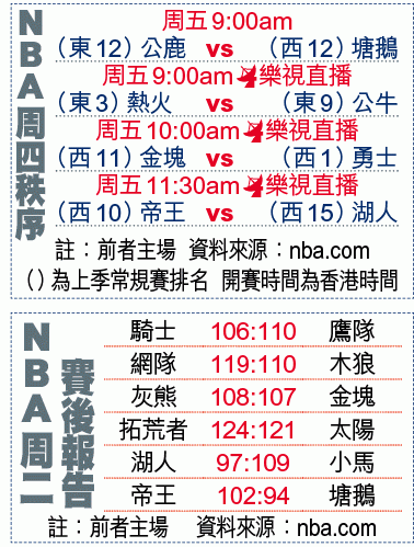【綜合美國外電】周二舉行的NBA常規賽,騎士雖有「三巨頭」表現出色,但這隊東岸一哥仍在主場爆冷以106:110不敵鷹隊,今季的不敗身亦慘遭打破;而勒邦占士(LeBron James)支持的希拉莉更在同日的美國總統大選敗予特朗普。