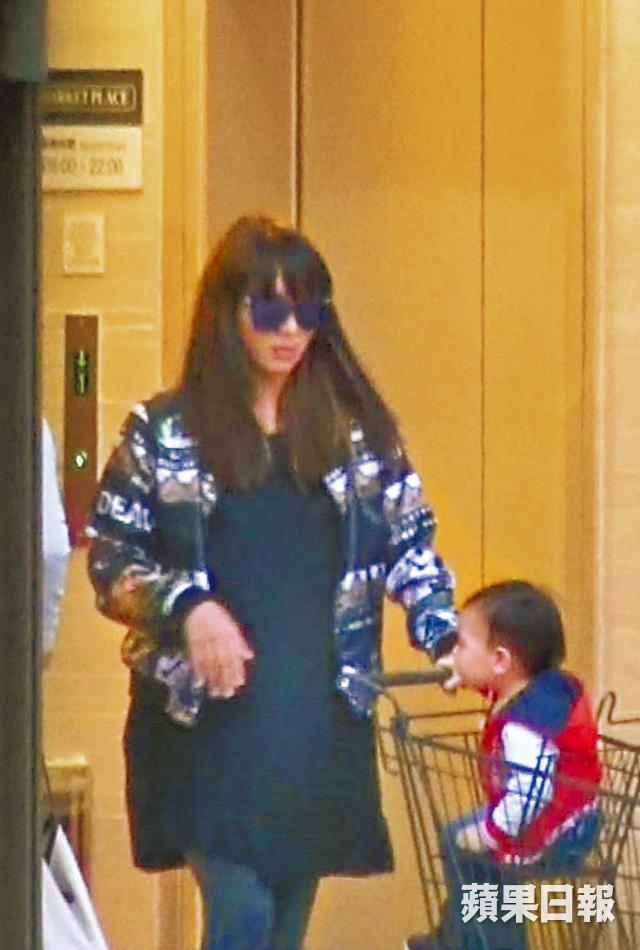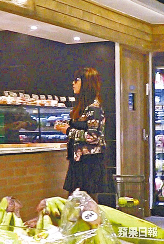 當日下午5時多,Ella與外傭湊着囝囝bèbè G,由司機送往超市濕平。一身黑衣加外套的Ella,身形圓碌碌散發孕味,她在超市專心揀食物,以健康的生果和麵包為主,已懂行的bèbè G就由外傭寸步不離贒實,每當有人經過Ella母子身邊,Ella都警覺性甚強。會行會走的bèbè G十分活潑,當外傭讓他在地上行時,他即好奇四周圍走,還走到正在揀麵包的Ella身邊,𠱁到媽咪很開心。