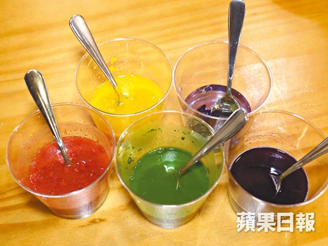 加入大菜的顏色液體很易會凝固,如果未用到的部份,可以坐暖水或放入保溫壺中保暖以保持液體狀態。