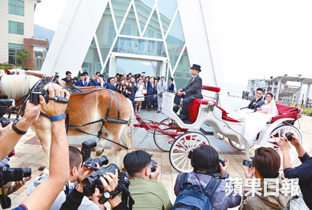 現年34歲的C奶宅男女神孫慧雪,昨日嫁給有米男友羅天彥(Edwin),她穿上low cut婚紗,變身爆乳俏新娘。雪雪昨日在愉景灣舉行童話式婚禮,行禮時聽到老公讀誓詞,兩度拭淚。一對新人禮成後,坐馬車離開教堂,二人甜爆連咀六次。