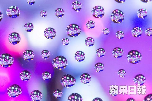 如果不想添置太多裝備,用手機影水珠也同樣可行。同樣在膠片噴上水珠,手機盡量靠近水珠但要保持對焦清晰,再配合變焦放大,一樣可以得出相似效果。