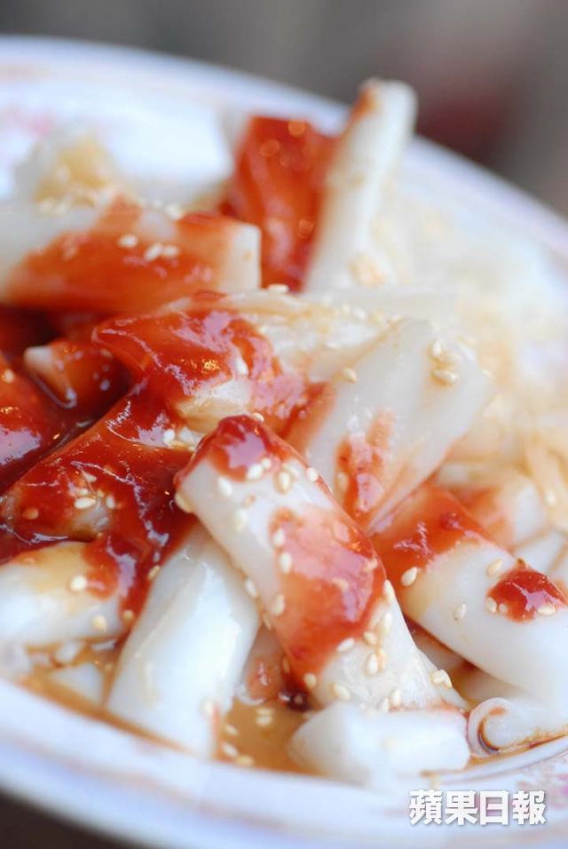 據講,一日賣近萬條腸粉的合益泰,本是腸粉批發的老字號,腸粉白滑煙韌,有陣陣米香。另一個深受街坊歡迎的主要原因,是因為花生醬料加入了豬油,遠遠就聞到一陣香味,加上甜醬、辣醬跟芝麻,可謂天下無敵。