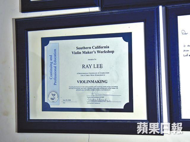 當今很多價值連城的古董小提琴,令人趨之若鶩,大多也是來自十六、十七世紀意大利小提琴之鄉克雷莫納(Cremona),而Ray醉心研究的,便是來自當地三大著名小提琴工匠世家Amati、Stradivari及Guarneri的名琴,「1750年之前的名琴,受文藝復興時期影響,有獨特迷人的聲音,全世界的人都正在研究。」普遍人也認為,要學習當今最好的提琴工藝,必然往意大利,他卻選擇前往美國芝加哥,跟隨著名做琴師Michael Darnton深造琴藝,「手做小提琴是一個古老行業,有很多真正的傳統做琴學問只存在於某些家族、名琴店,而我的老師是在全世界頂尖的芝加哥名琴店Bein & Fushi做學徒,接觸過無數幾百年歷史的名琴。」學藝五年,從此對小提琴另眼相看,「2008年前我自學做琴,以為自己熟悉琴上每一個瘡疤,每一個細節,對小提琴的概念、外形有新看法後,回頭再觀察同一把琴,原來它是立體的,自己曾經遺漏太多細節。」