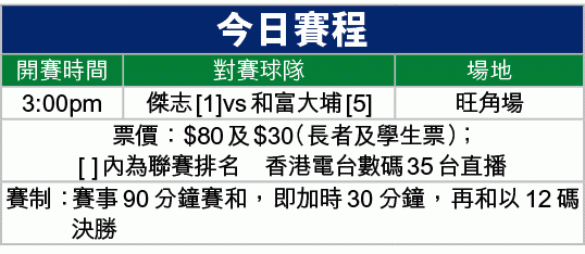 【本報訊】傑志(圖)今午三時在旺角場上演的銀牌準決賽強陣出戰和富大埔,圖在聖誕日率先「拆敵」,爭取三年內第二度躋身決賽,向重奪失落多年的銀牌目標進發。