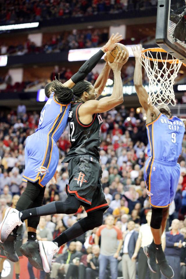 夏登在最後攻勢吸引雷霆球員夾擊,然後妙傳予籃下的尼利(Nene Hilario),後者在最後0.7秒博得犯規並兩罰全中,助火箭險勝兩分。雖然雷霆主將韋斯卜克取得49分八籃板五助攻的亮眼數據,但火箭勝在戰力平均,除了夏登交出「雙雙」26分12助攻,亦有五人得分達雙位數。