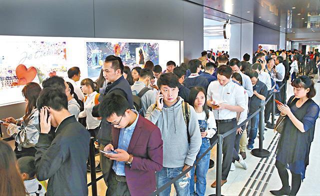 香港多間蘋果店昨早亦大排長龍,ifc及觀塘店人龍一度排至商場天橋,希慎、又一城店亦「打蛇餅」,龍頭顧客早上6時許已到場。記者所見有數百人輪候,購買流程順暢,職員先登記好每人所購貨品,每次放行數人入舖時貨品已擺在眼前,平均輪候一至兩小時,店方按存貨截龍,未見混亂。