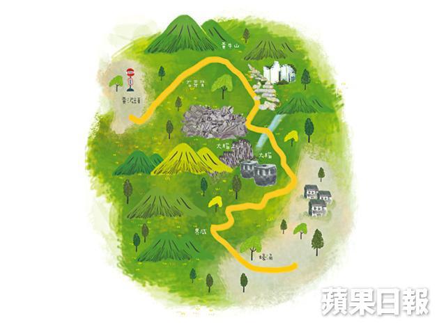 除了漁護署所興建的山徑,很多行山友也愛在小徑捐窿捐罅,Teddy三年前也在水牛山以南,無意中發現有條隱蔽的路,細心探索原來是一條古道,他如獲至寶,沿着前人鋪下的石路,在密林裏尋幽探秘,十分過癮,但留意部份路段樹木較茂密,需跟隨經驗行山者。他發現荒廢已久的大腦古村,其歷史已不可考,只知村內的曾氏宗祠於1985年重建,祠內放了生果,算是為這裏添點生氣。沒多遠便有台古老大石磨,教Teddy大開眼界。這個製作蔗糖的石磨,主要石製結構如滾輪、基座,以及左右兩方的石柱仍大致保存完好,十分難得,他更翻閱明朝科學家宋應星的著作《天工開物》得知其運作方法,查看其他歷史書籍,他估計石磨最少有120年歷史,希望前人匠心獨運的精神,被遺忘的鄉村文化讓更多香港人認識,「呢度屬郊野公園範圍外,未受法律規管,但地理限制未能持續發展,這些文化容易消失。」他希望有村民能回來重建村落,能顧及文化保育,有限度發展。理想歸理想,但現實是殘酷,他朝這裏因發展而消失,亦總算有人留下憑證,記錄前人的足迹。