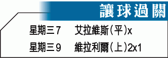 維拉利爾周三西盃16強次回合迎戰皇家蘇斯達,力求平反首回合敗局。維軍上仗主場聯賽踢和巴塞隆拿,表現理想,而且他們近年迎皇蘇成績佔優,所以今仗主隊讓平/半撐上盤。