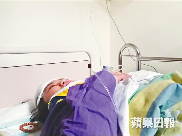 鄒母則表示,女兒當時坐在肇事城巴的下層車尾位置,背着車頭方向而坐,卻因意外倒地重創,「佢手指斷咗要駁骨,個頭穿咗縫咗6針,頸椎的第二節裂咗,醫生話要做手術,我哋唔贊成,好彩冇歪,要用頸箍固定」。