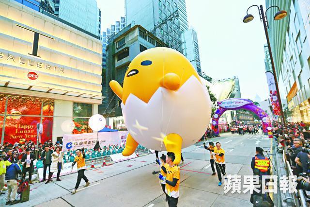 其中,中國香港單車聯會的表演人員站在仍轉動的單車,甚至雙人騎在一部只有單輪接地的單車,高難度動作叫觀眾嘩聲四起,贏得不少掌聲。德國高蹺藝術團及德國藝術巨輪以高度取勝吸睛,更相當識做和沿途市民握手。日本Sanrio明星隊帶來超巨型蛋黃哥及多個港人熟悉的卡通隊伍,成為另一支被粉絲狂攝的隊伍。