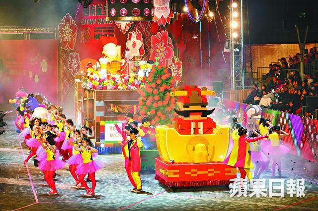 【本報訊】光彩璀璨的花車與熱鬧的巡遊隊伍,年初一晚上在尖沙嘴與市民共慶新春,有15.5萬名市民和遊客觀賞。每當衣飾奪目的載歌載舞隊伍及多輛花車逐一經過時,喝采聲不絕,人人爭相拍照留下新年精采喜慶一刻。