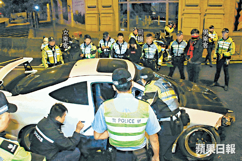 被捕3人為22歲姓柯司機、22歲姓鍾乘客及17歲姓蔡女乘客。事發於前晚11時許,西九龍總區執行及管制組總督察劉達輝與同袍駕鐵騎巡邏,發現一輛懷疑非法改裝本田白色私家車,沿亞皆老街向大角嘴方向行駛,鐵騎在砵蘭街欲截停該車時,私家加速逃走,警員追捕。
