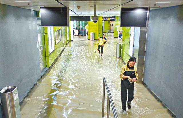「天花板係咁灑水,啲人要間水行,水浸到腳眼,成腳成鞋濕晒!」張太引述所見情況,職員立即開閘叫乘客不用拍卡出閘離開。據她聽聞,大堂已灑水15分鐘,未知發生何事。讀者馮先生晚上在海怡站欲乘搭港鐵,惟經A出口入站時,發現大水浸,水深至腳眼,職員忙於清理。