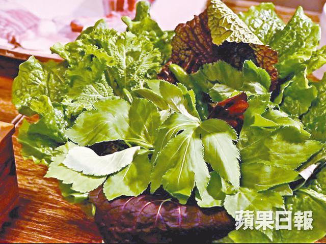 這裏提供的黑毛豬,全部都是六個月左右就帶去屠宰,肉質非常之嫩,而且伴碟的蔬菜都是孫老闆自家種植。韓國人的傳統烤肉食法是以芝麻葉夾着肉同吃;香港人則會選用生菜取代芝麻葉,以減低油膩感。烤肉可蘸三款醬汁,一款是鹽,另一款是豆瓣醬,還有一款特調的醬汁,說是加了麵豉醬及銀魚仔。比起平日吃的燒肉,這黑毛豬豬味更濃,而且可能因為用炭火燒,將豬肉油份逼出,外邊焦脆之餘,內裏仍然保持肉汁,其實不用蘸醬都很好吃。不過若用芝麻葉包着小辣椒、烤肉及其他配料同吃,味道變化就更加妙。