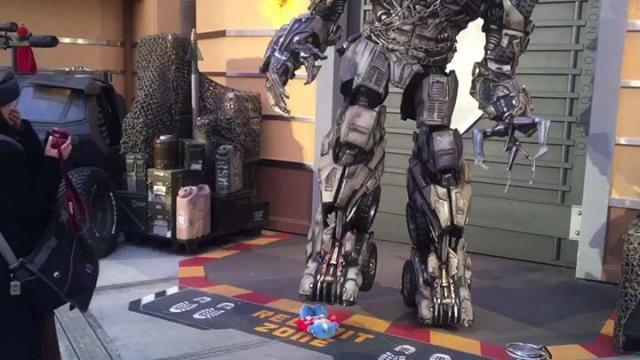 做奸角就要做得徹底!這位於美國荷里活環球影城工作的《變形金剛》狂派領袖「麥加登」,就玩得好瘋狂。話說有一位日本女fans拿了一個博派領袖「柯柏文」的公仔到他面前,還要求他出腳「對付」這死敵......