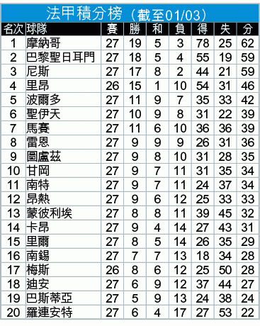 里昂近況大勇,連同盃賽四連勝兼轟入20球,迪比轉會後也重新開始,上仗對梅斯就交出兩個入球一次助攻,短短七場聯賽已射入三球,超過了曼聯季半聯賽入球總數。除了迪比,里昂也不乏數糊人物,華布拿、拿卡錫迪等近況亦勇,除後衞莫雷外,可「夫添」出擊。不過里昂後防未算穩,作客已連續六場有失波,今仗也不易保清白身,入球大可期。