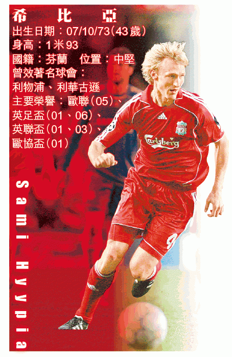 盛傳利物浦今夏將再度訪港,幾位名宿包括路爾斯加西亞、貝加、史米沙、麥卡迪亞和希比亞昨就先與香港球迷見面,其中希比亞接受本報專訪時指,2005年歐聯冠軍是他最重要的錦標,惟不滿意自己當年決賽對AC米蘭的表現。