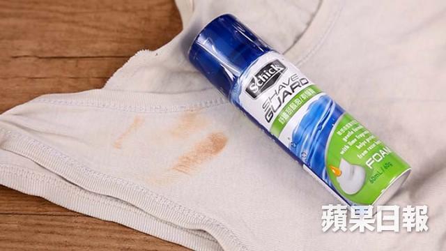噴剃鬚膏落化妝品迹表面,再擦拭。
