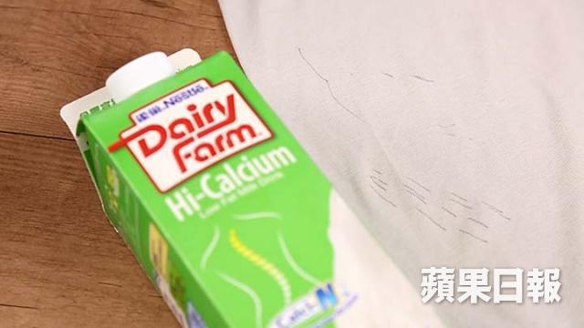 把奶倒到污迹上,擦過後可以清除咗唔少,但要留意有強烈奶味殘留。