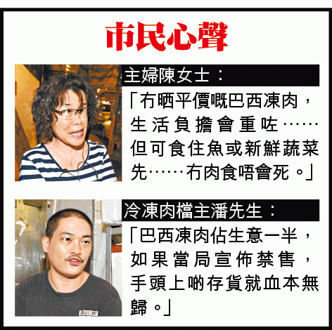 【本報訊】巴西凍肉較其他國家產品至少平一半,突然禁入口,基層負擔勢百上加斤。40多歲深水埗基隆街居民阿香,多年來都愛到連鎖凍肉舖買急凍豬手、雞翼、五花肉,「多數都會揀巴西,寫住巴西嘅都平啲」,巴西肉恐絕迹令她擔心要捱貴肉。阿香坦言與3歲大的兒子靠綜援金生活,每天只能花約20元買肉煮飯,她稱惟有再辛苦點省多些錢,也堅持要買肉給兒子吃,因「個仔𠵱家發育時期,我都想佢食多啲肉!」