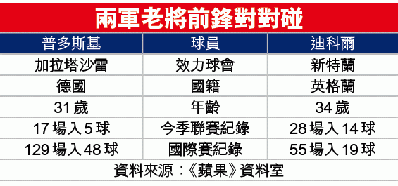 德國的31歲前鋒、「科隆王子」普多斯基將於周三以隊長身份領軍,踢最後一場國際賽,但34歲的英格蘭鋒將迪科爾,同日卻會踢他三年來的首場國際賽。