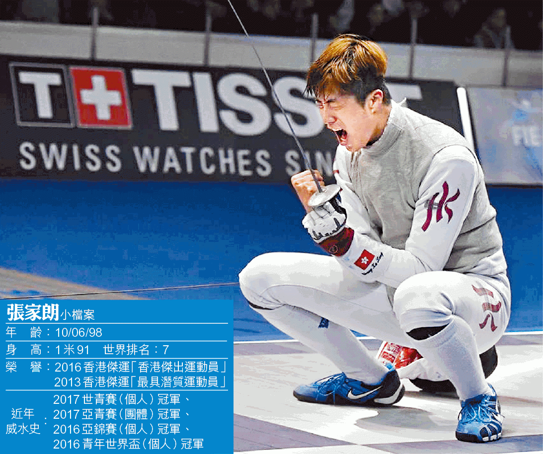 上月首奪香港傑出運動員的「八傑」後,家朗曾提到下一個目標就是爭取世青冠軍,言猶在耳,他在周四的花劍個人賽(20歲或以下青年組比賽)過關斬將,決賽對日本的齊藤俊也,一度落後四比九劣勢下,一劍劍追平至十比十,終以十五比十一奪得香港歷史首面世青(青年組)冠軍。