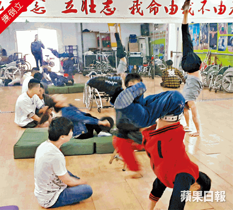 【本報訊】《蘋果》追蹤在港行乞的殘疾乞丐,發現他們簽證到期後,會返回深圳龍崗區的「點亮生命傷殘藝術團」培訓基地。記者以探訪人士身份入內,發現他們均在藝術團培訓,基地佔地約2,000平方呎,一幢兩層,屋內住有30多名傷殘人士,有雙腿皆斷、小兒麻痹、痙攣等,為表演接受唱歌、體能及書法等訓練。