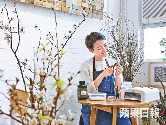 踏進她的工作室,一邊賞着日本原產富士櫻和彼岸櫻,一邊嚐咖啡,心情舒坦。她剪掉櫻花預備粉乾,剩下的枝節埋進泥土,望再長出新花蕊。她大學時念地理及資源管理學系,學過的土壤知識終派上用場。